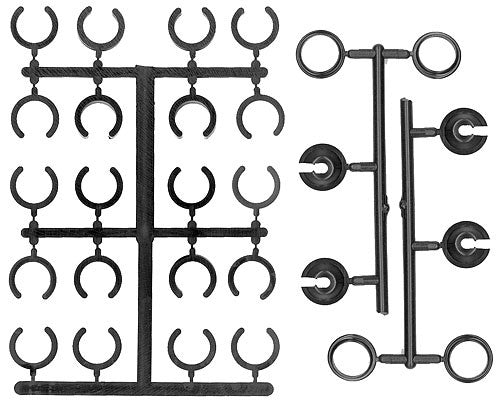 This is a replacement set of shock preload clips, and cups for Team Associated RC10GT2 1/10th scale off-road truck. Includes four of each size of shock preload clip 1/32, 1/16, 1/8, 1/4. Also includes four spring cups, and four shock spring rings.