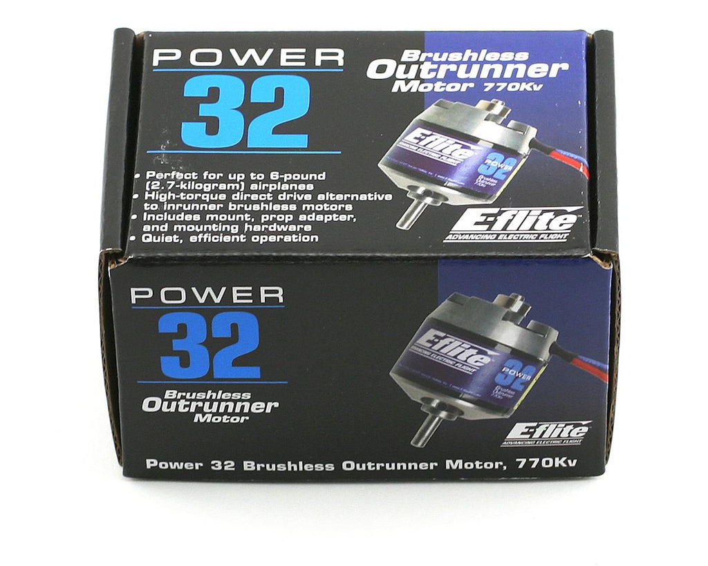 The Power 32 is designed to deliver clean and quiet power for 30- to 36-size sport and scale airplanes weighing 3.5 to 6 pounds (1.6 to 2.7 kilograms), 25- to 36-size 3D airplanes up to 4.5 pounds (2 kilograms), or models requiring up to 800 watts of power. It's an especially good match for the Gee Bee Tiger Moth, TopFlite DC-3, Phoenix Sonic 25 and 3D airplanes such as the E3D.