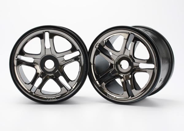 Wheels, SS (split spoke) 3.8'' (black chrome) (2) (use with 17mm splined wheel hubs & nuts, part #5353X) (fits Revo/Maxx series)