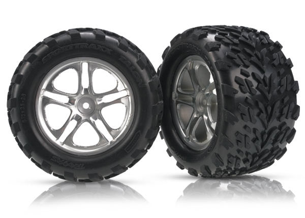 Tires & wheels, assembled, glued Split-Spoke satin-finish wheels, Talon tires, foam inserts (2) fits Maxx w/sealed pivot ball suspension & Revo